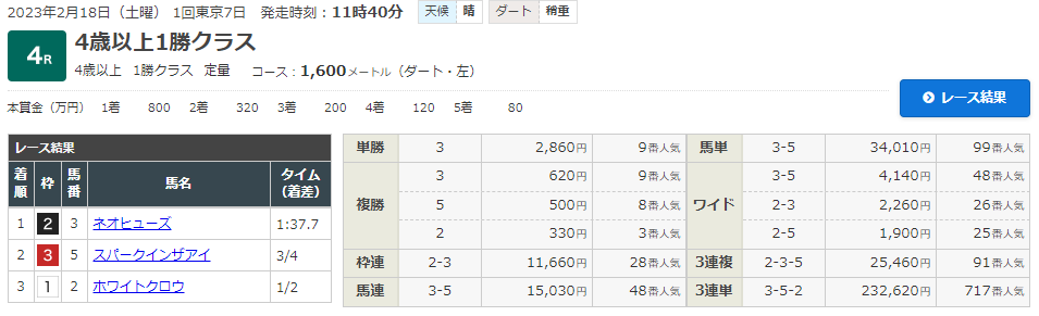 中山10R東風Sにて3連単的中