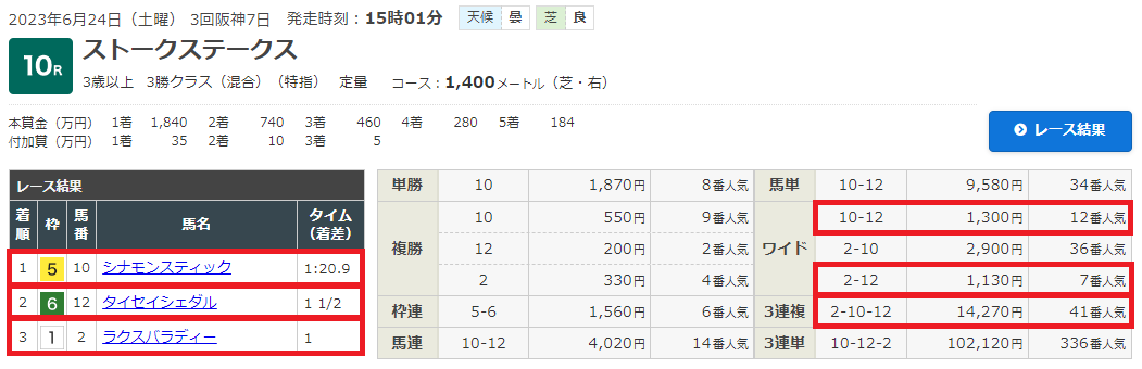 24日(土)阪神10Rで