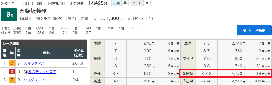 13日(土)京都9Rで無料情報的中で12万5100円獲得!