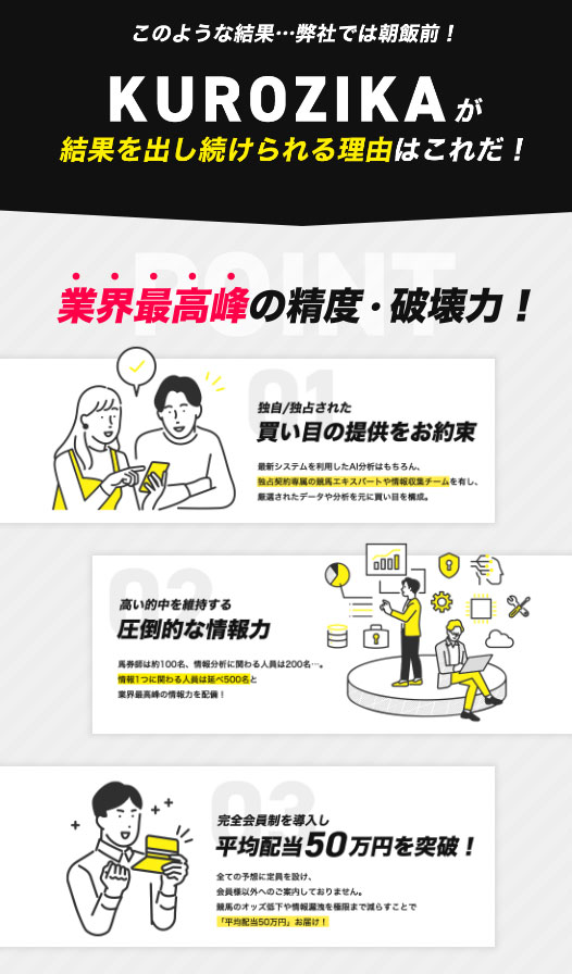 今回は【KUROZIKA】を検証しましたが無料情報の的中もさることながら実質無料で有料情報に参加できて、少点数の買い目で的中し見事に黒字収支だったので【優良】認定したいと思います!