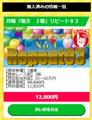 今回参加したのは「リピート93」という地方競馬のプランです。