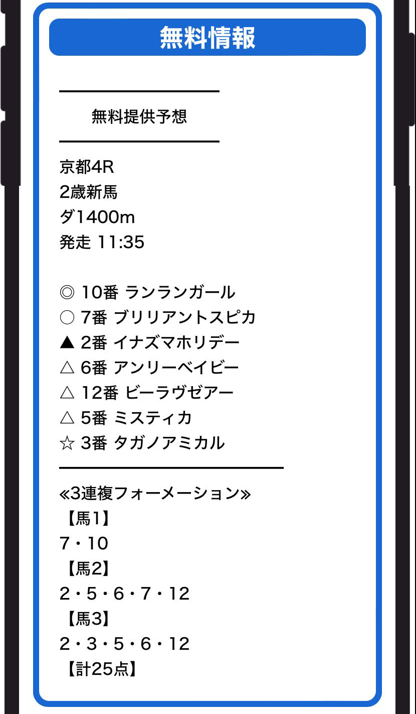 実際に公開された買い目がこちら↓