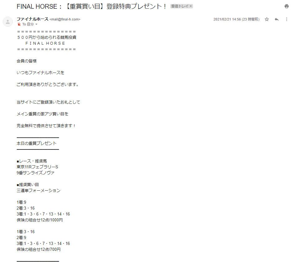 悪徳サイト認定:ファイナルホース(FINAL HORSE)