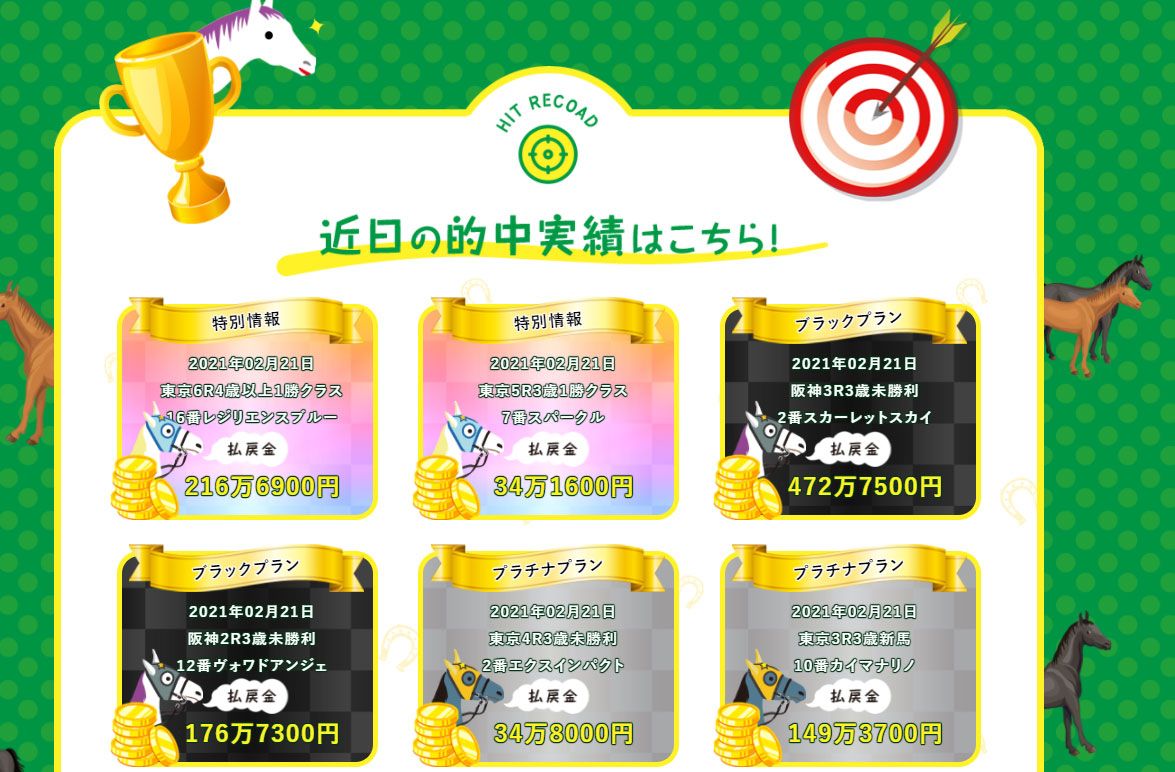 あまりにも酷い買い目でいったいどういったレースを的中させているのかと不思議になりサイト内の的中結果を見てみるとご覧の通りでした。