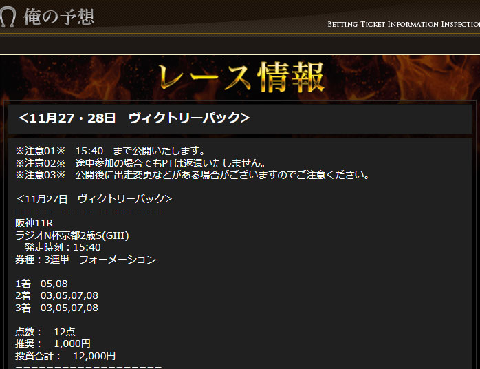 今回検証したのは俺の競馬という予想サイトの「有料情報」検証となります。