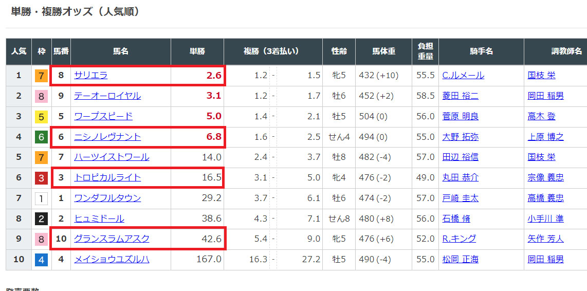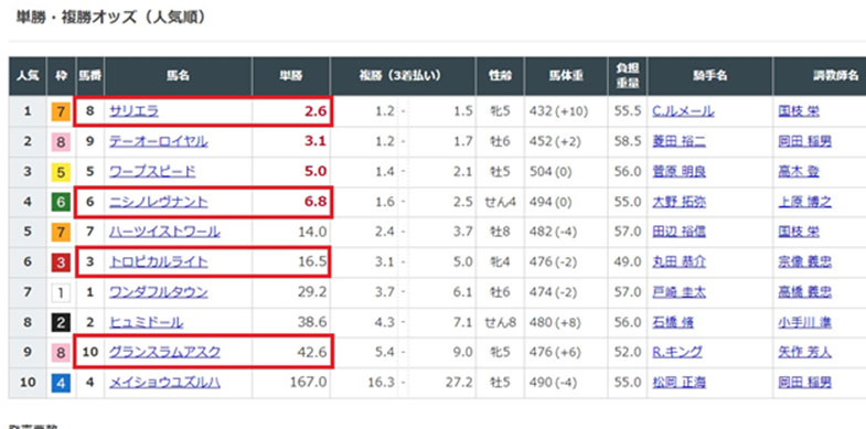 10頭立てなので予想しやすいからでしょうか。