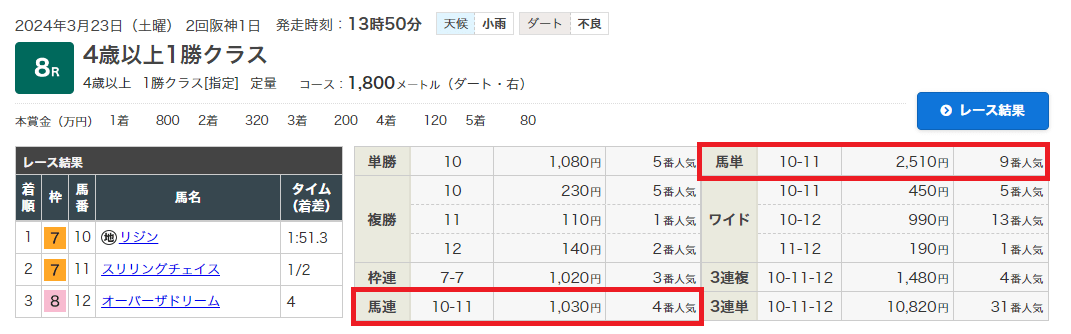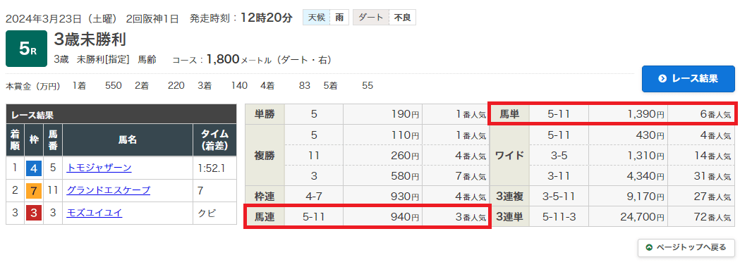 3月123日(土)阪神5R+阪神8R連続的中!