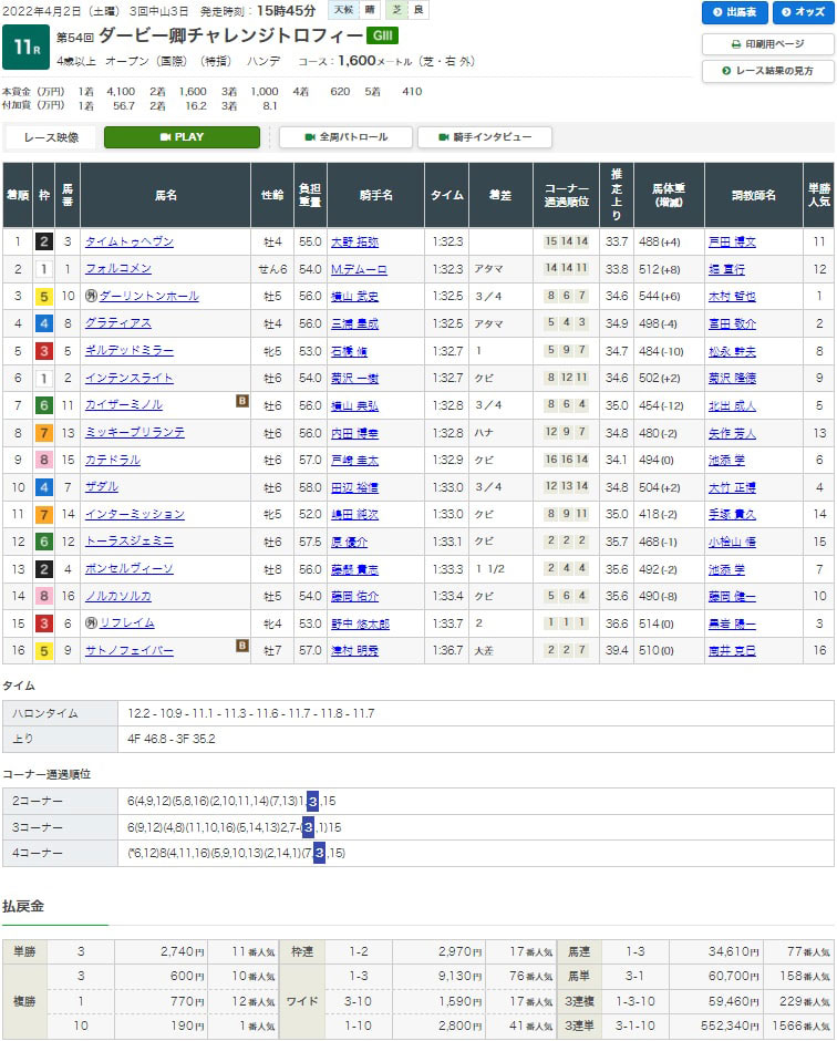 【検証レース:4/2 中山11R G3 ダービー卿CT】