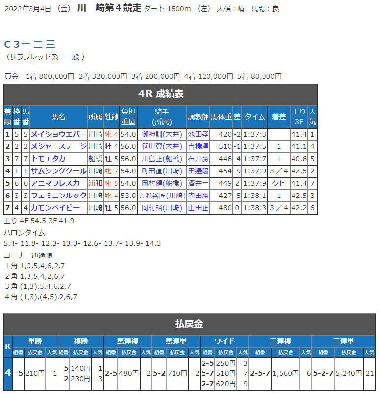 【検証レース②:3/5 中山8R 4歳1勝クラス】