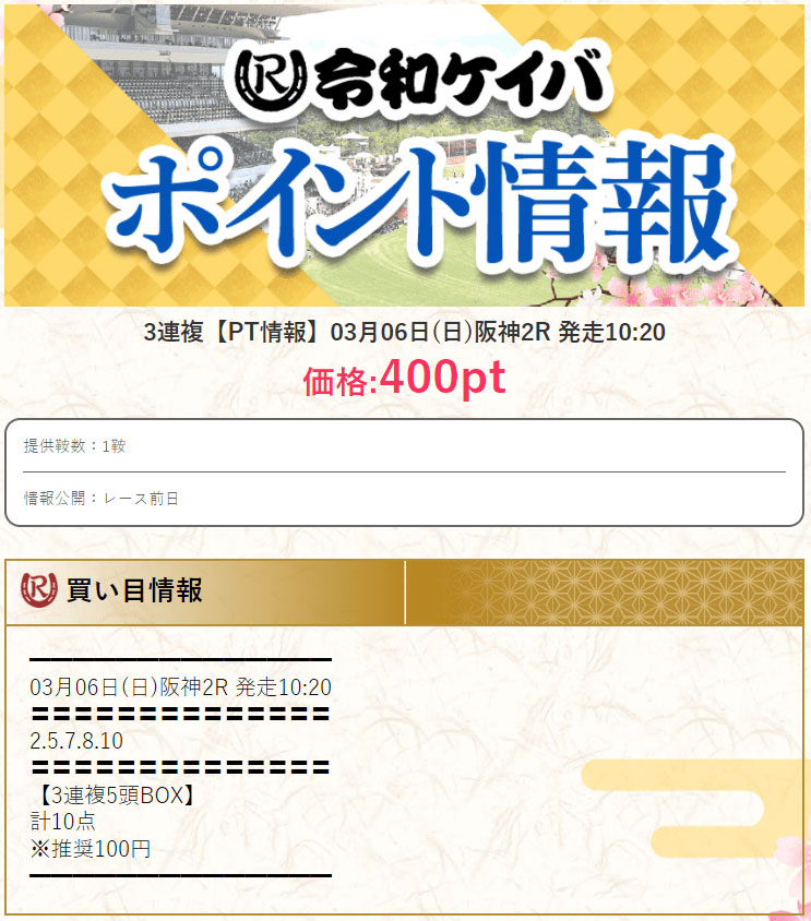 今回検証したのは令和ケイバという過去にも検証した予想サイトの「無料情報」と「有料情報」検証です。