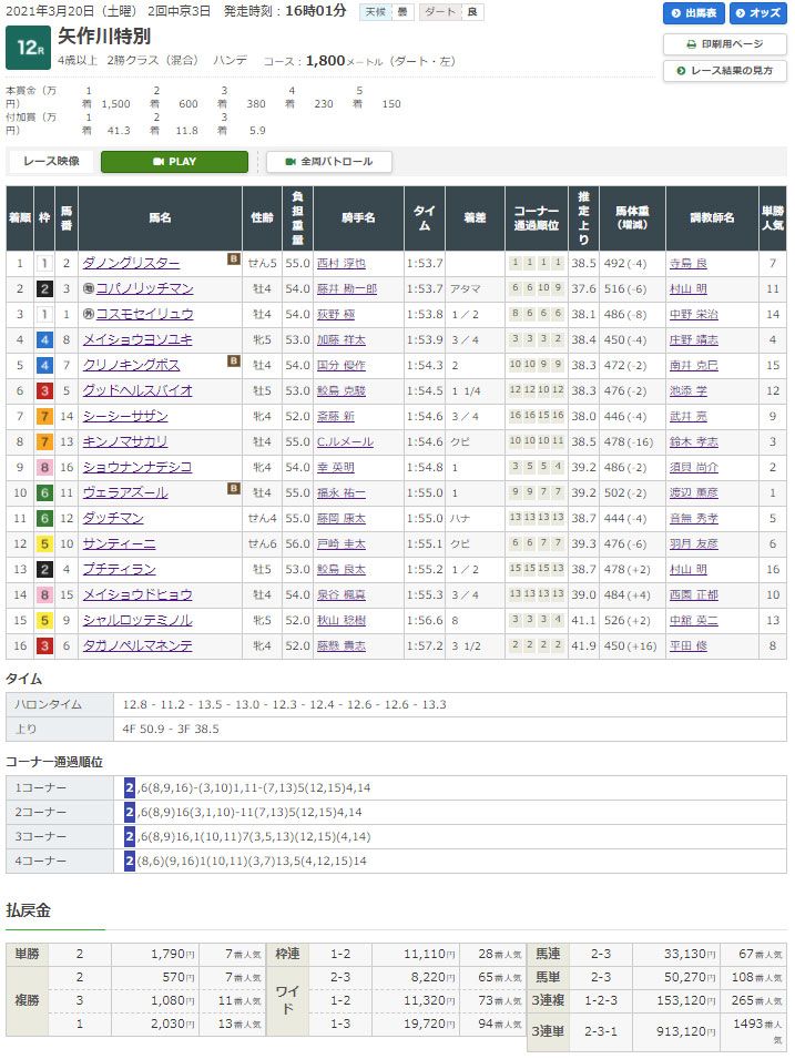 提供されたレースは中京12R矢作川特別。