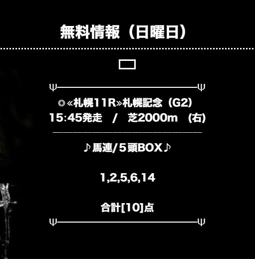 札幌記念(G2)の予想でした。基本的にはメインレースの予想を公開しているのですかね。