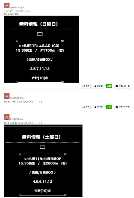 当たるサイトであればオススメできますが、無料情報の結果を踏まえ、有料情報も恐ろしいくらい高額な物ばかりなので金額的にもみなさまも買わないことをオススメしたいと思います!!
