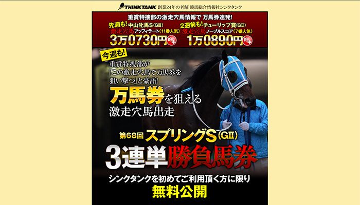 【悪評】シンクタンク競馬NET一点馬券穴 |