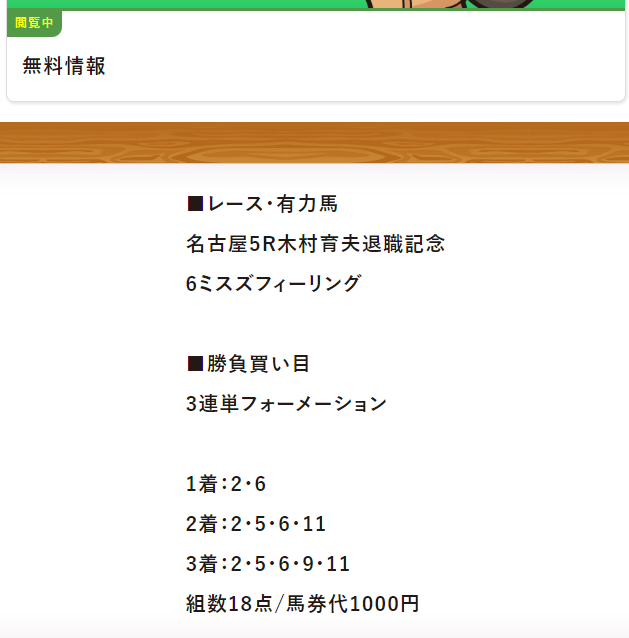 無料情報と有料情報ともに的中率いいですよね。 調子いいですね。