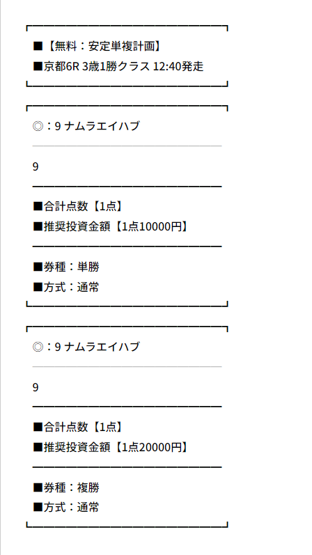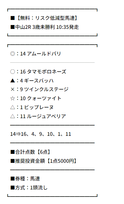 少点数買い目のご提供!