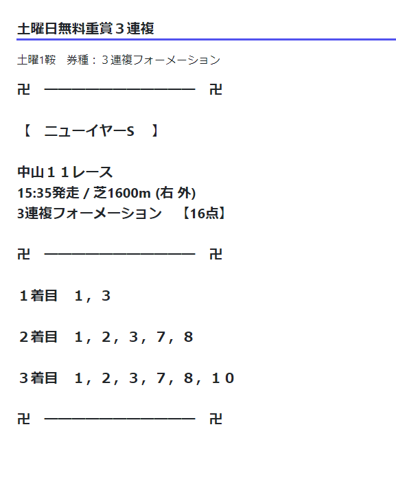 一応土曜日の買い目です。全然惜しくもない買い目です。