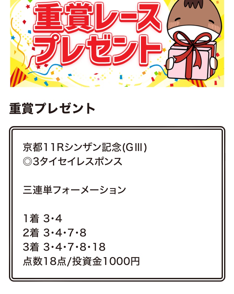 かすりもしない予想をありがとうございます もったいないことしたな 普通にうまいもん食いに行けばよかった