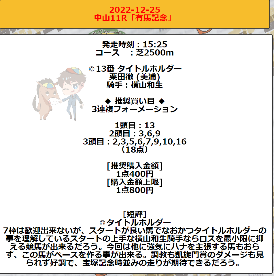 しかも予想も日曜しか出してくれないしケチだな