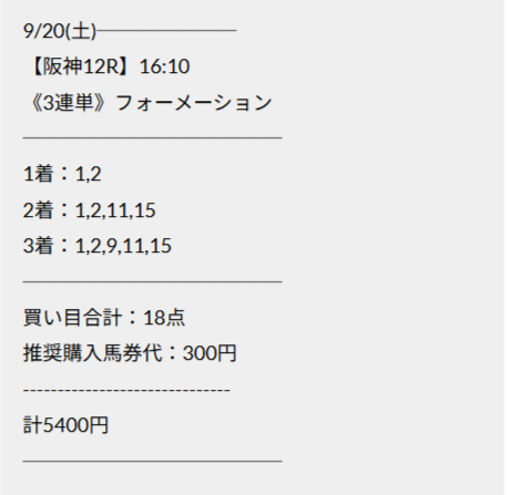 馬券代も5400円で的中金額が212,580円でした