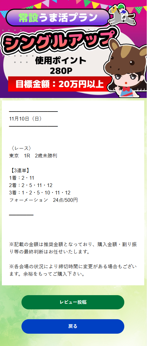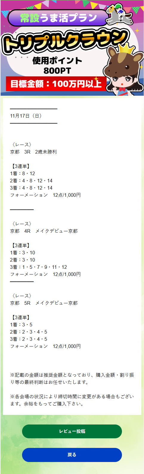 朝一から342.6倍的中貰えてめちゃめちゃ嬉しかったです、配当も1点500円でも17万1300円払い戻しでわるくない! リピートできる競馬予想サイトでした!