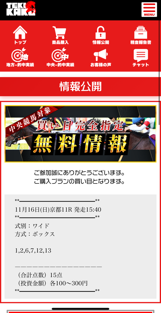 無料情報だからワイドだったけど、稀にない1~4人気が馬券外という3連単100万馬券決着の5人気→6人気をぶち抜いて当たり!
