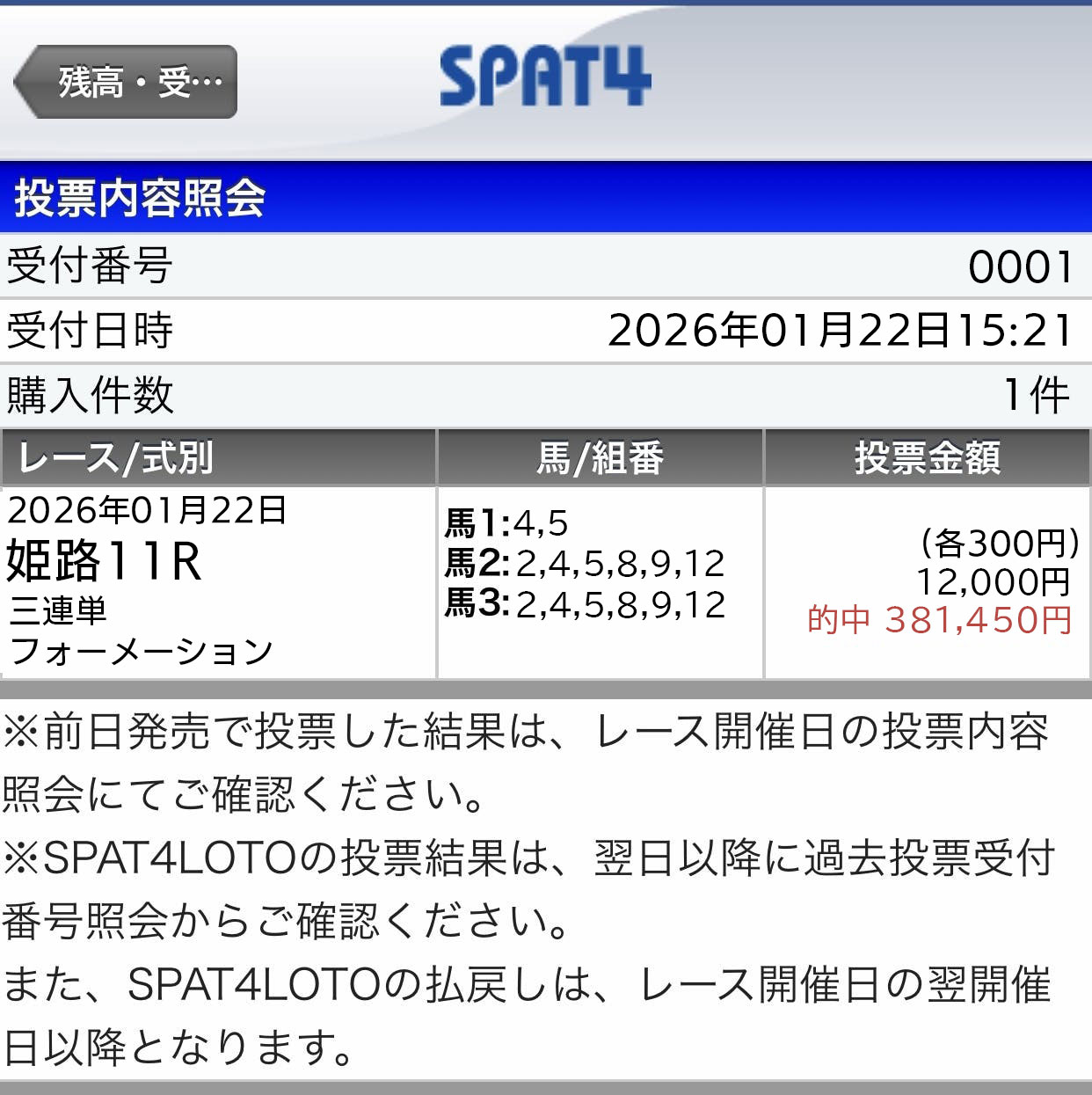 週明けから40万的中とか仕事に支障でるれべるで情緒がおかしくなりますね…(笑) 仕事のスキマ時間にサクって稼げるから今週またどこかで使おうかと思います。